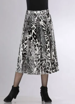 Herrlicher, figurumschmeichelnder, langer 6-Bahnenrock in bequemer Schlupfform, mit Dehnbund rundum sowie nach unten hin glockig schwingendem Saum durch die modische Godet-Form. Länge ab Taille ca. 68 cm, bei K-Gr. ca. 64 cm.