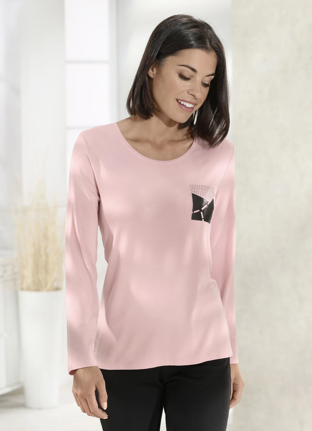 Ansprechendes Shirt mit Applikation in 2 Farben in Rosé und in Größe 36.