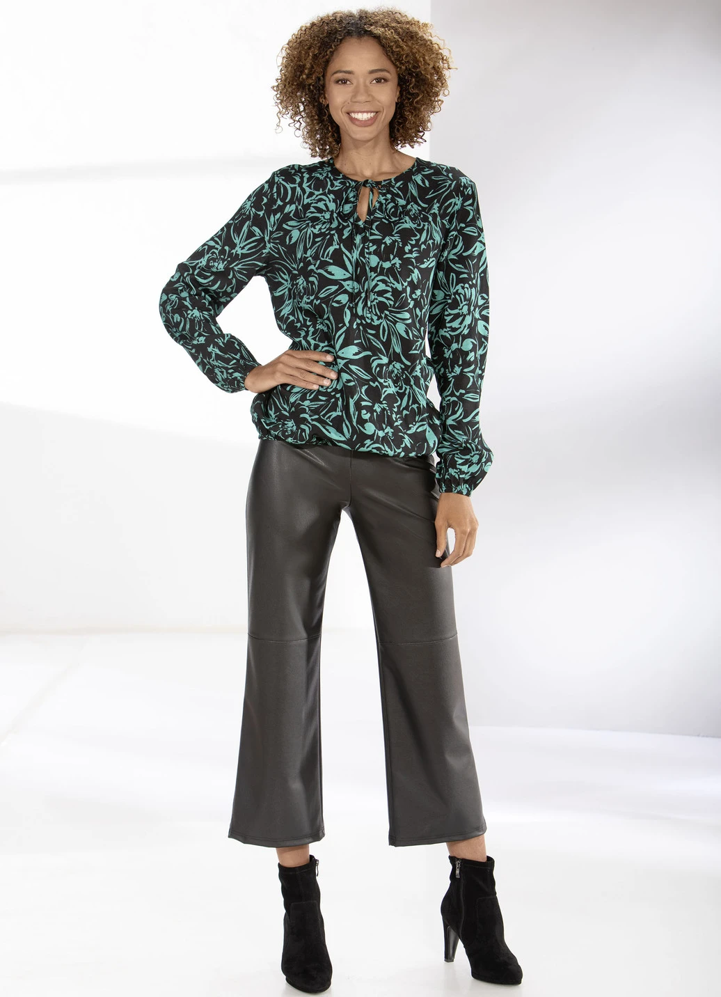 Ihr Modell BECKY – voll im Trend ist diese tragangenehme, scharze Culotte aus softem Nappaleder-Imitat: in bequemer Schlupfform, glatt anliegend dank des innenliegenden, unsichtbaren Rundum-Dehnbundes sowie Teilungsnähte im Kniebereich. Der weite, schön fallende Saumabschluß verleiht diesem Modell seinen femininen Chic. Innenbeinlänge ca. 63 cm, Fuweite ab 48 cm.