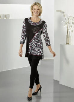 Fabelhaftes Longshirt in legerer Form durch Faltenlegung sowie Zierplättchen im Vorderteil und 3/4-lange Ärmel.
