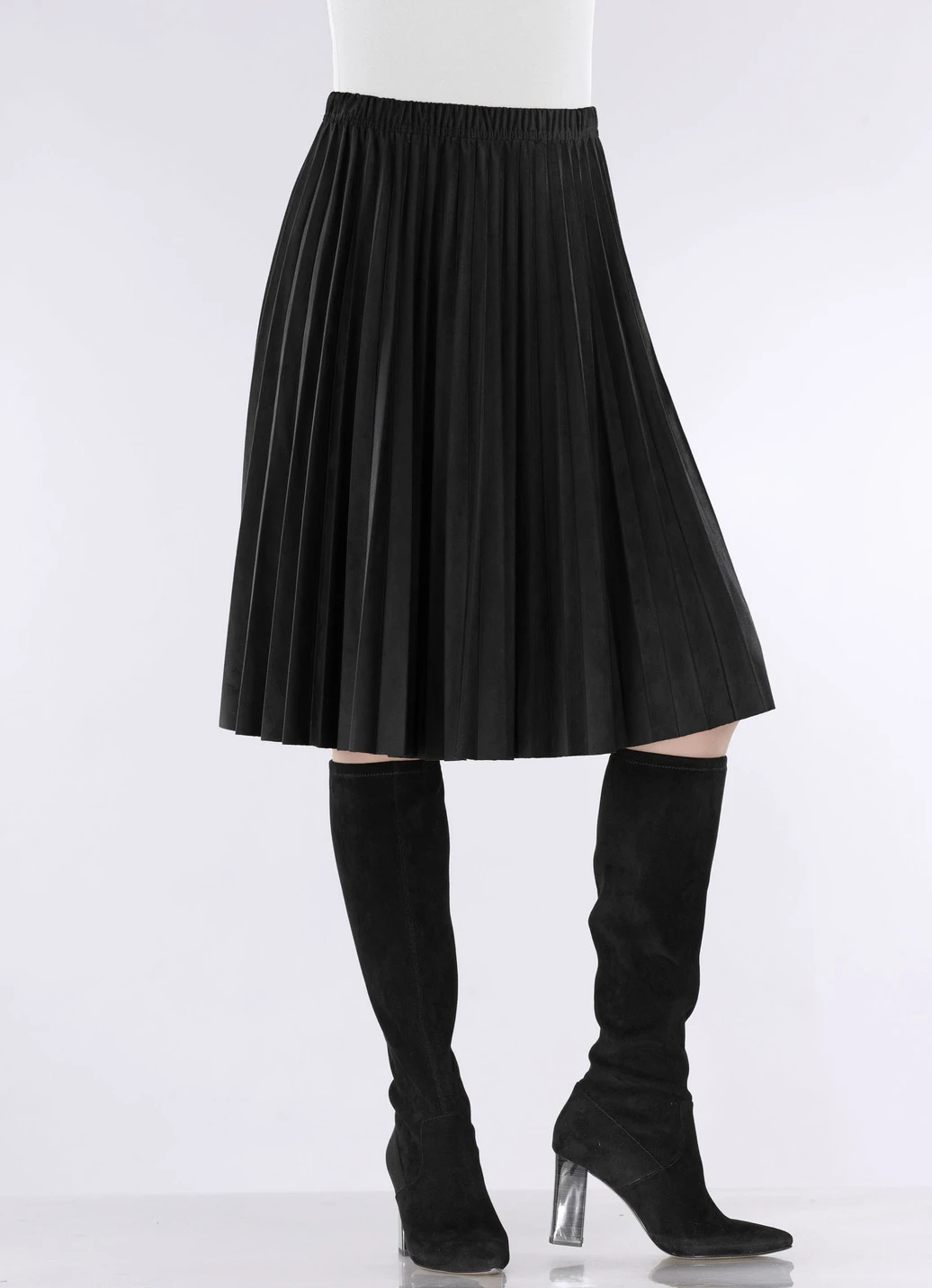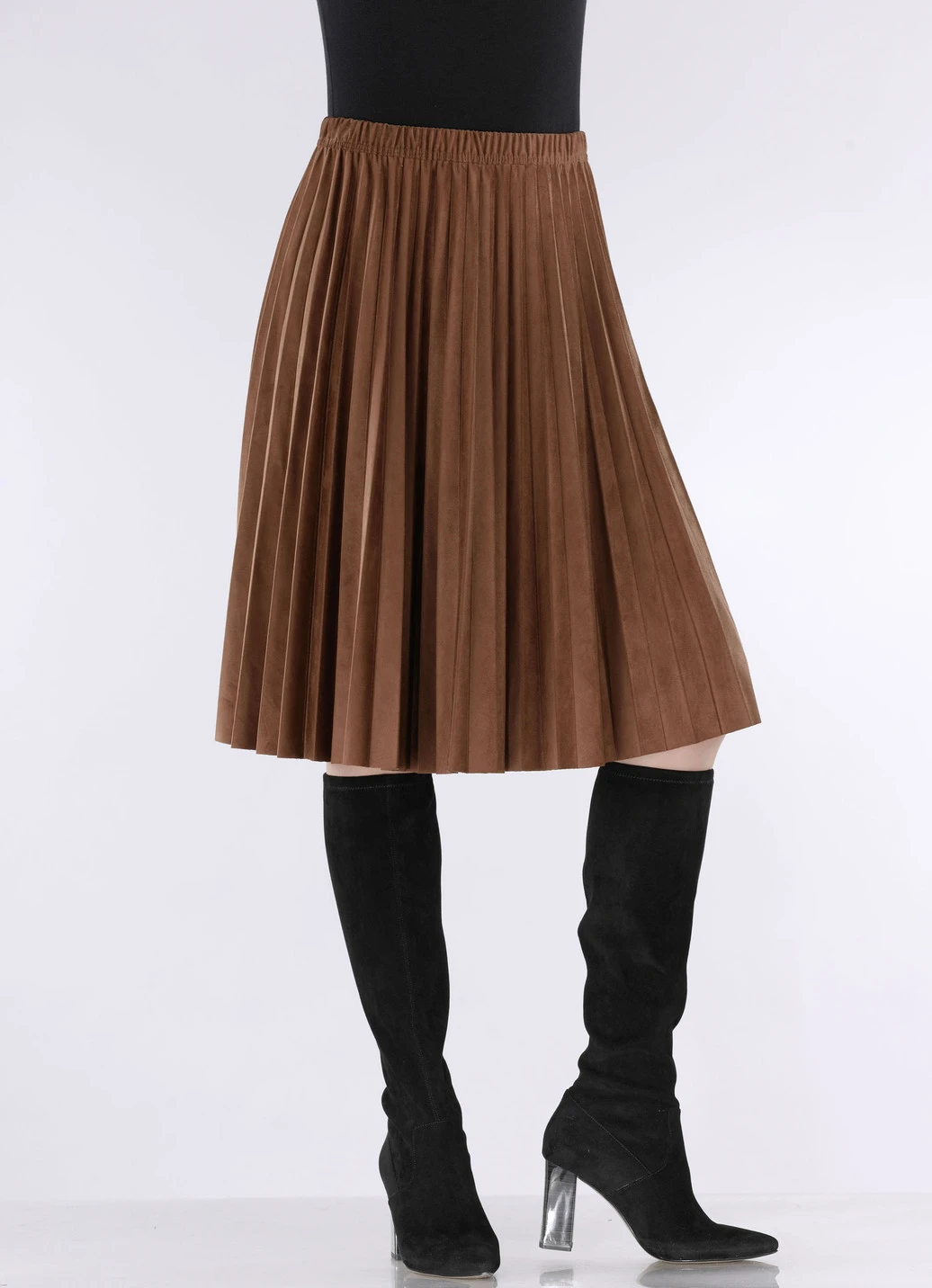 Trendgenauer Plissee-Rock in topaktueller Wildleder-Optik: die aufwendigen, rundum gearbeiteten Sonnenplissee-Falten verleihen diesem wunderschönen Rock seine elegant schwingende Silhouette! In bequem zu tragender Schlupfform, mit Dehnbund rundum. Länge ab Taille ca. 60 cm, ab Gr. 44 ca. 63 cm.