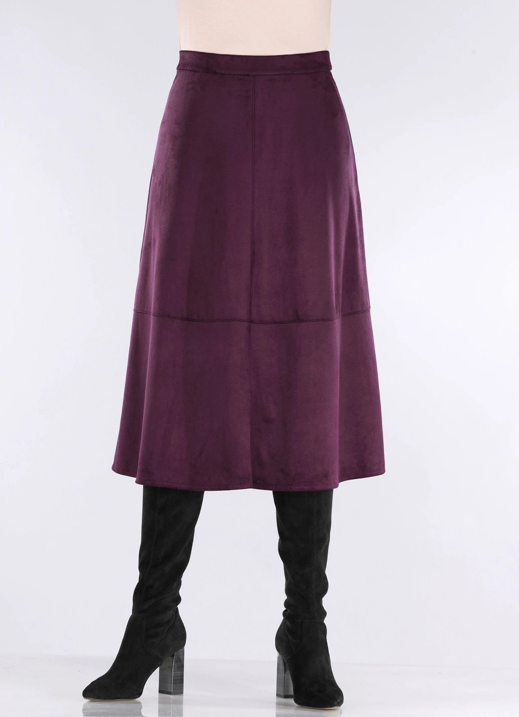 Samtweicher Rock in Wildleder-Optik in Bordeaux und in Größe 36.