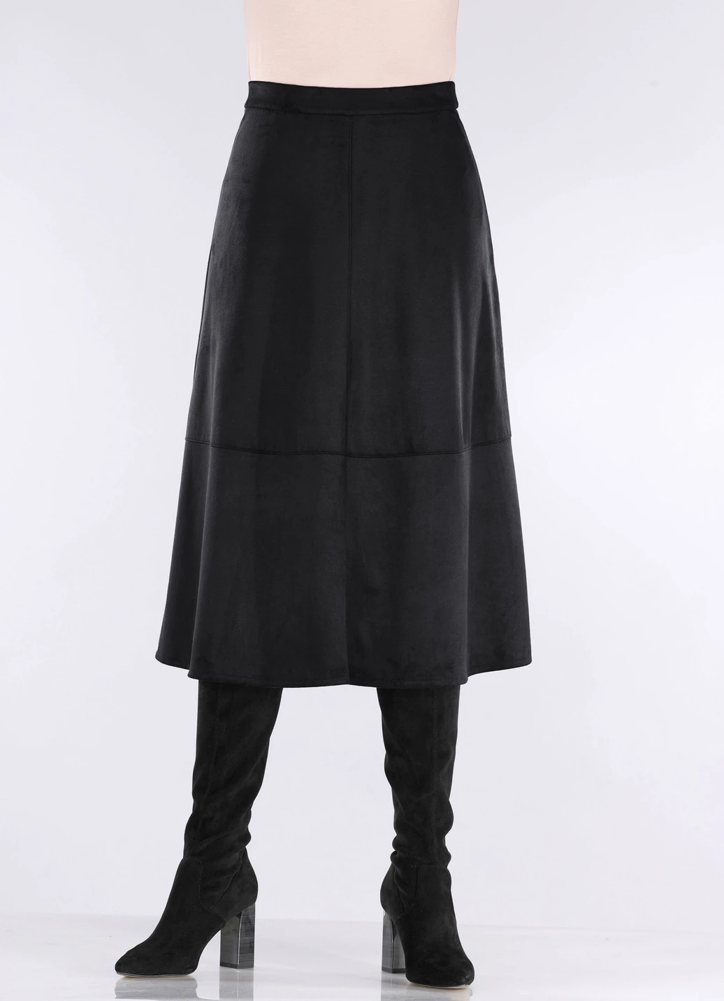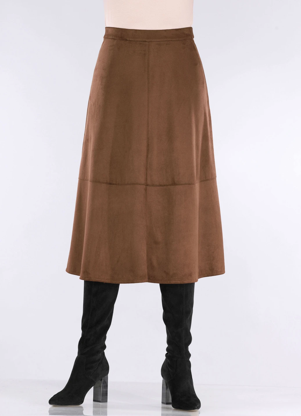 Trendgenauer und samtweicher nach unten hin leicht ausgestellter Rock in Wildleder-Optik: bequeme Schlupfform, glatt anliegend dank des innenliegenden Rundum-Dehnbundes sowie abgesteppte Teilungsnähte vorne. Länge ab Taille ca. 74 cm, bei K-Gr. ca. 70 cm.