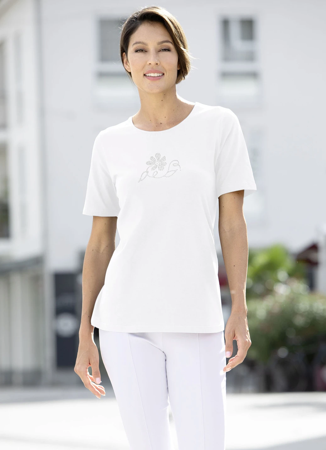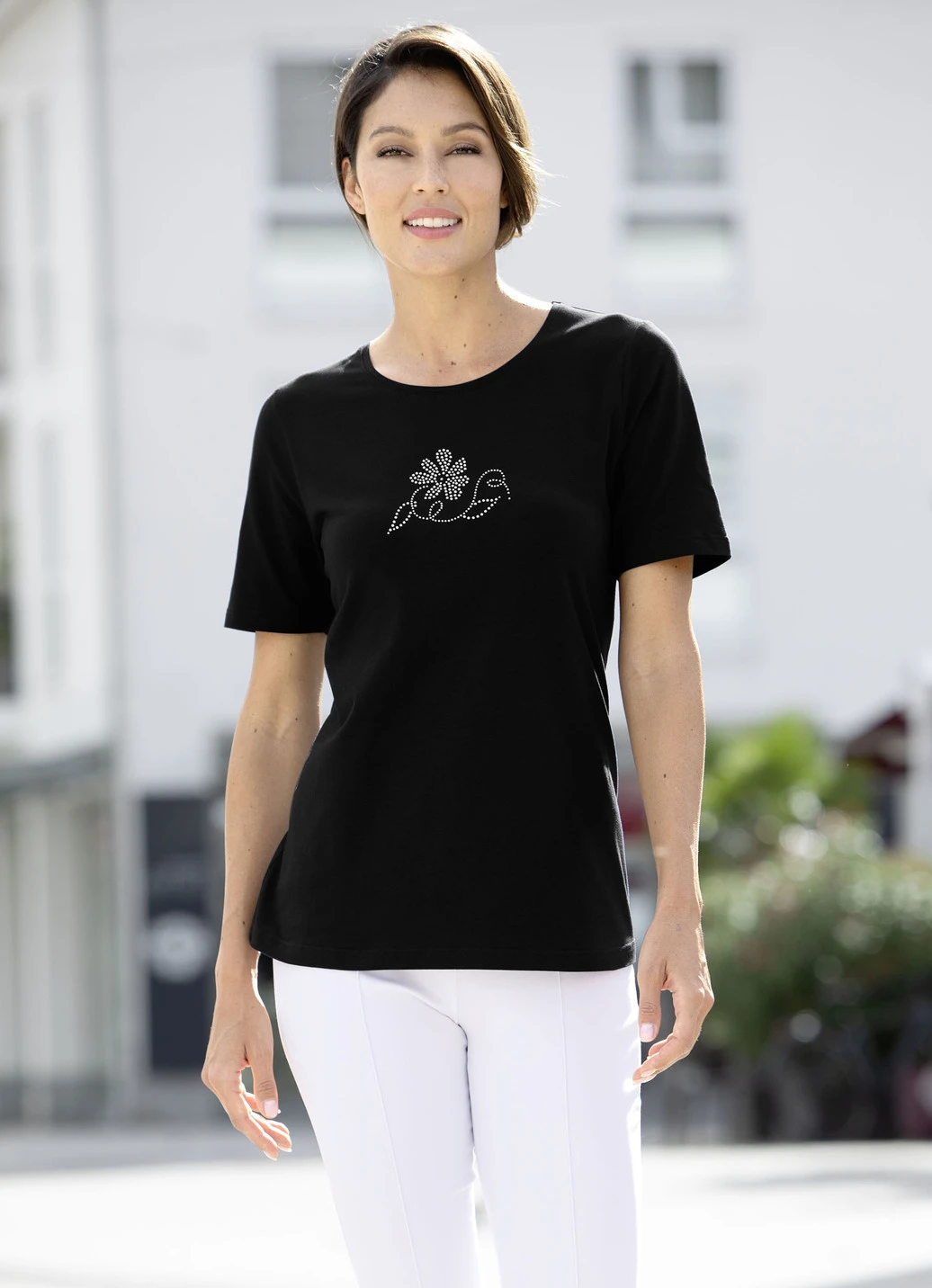 Der hohe Tragekomfort zeichnet dieses herrliche Shirt mit Strasszier im Vorderteil aus.