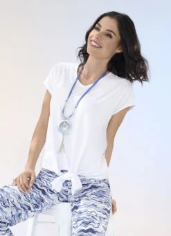 Flottes Shirt mit überschnittener Schulterpartie und raffinierter Bindemöglichkeit im Vorderteil.