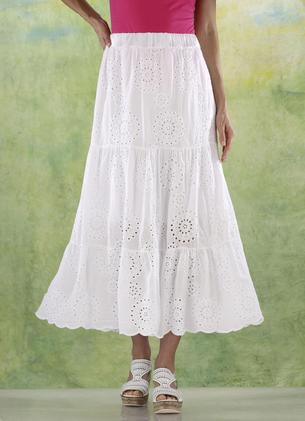 Stufenrock mit schöner Lochstickerei in Weiss und in Größe 17.